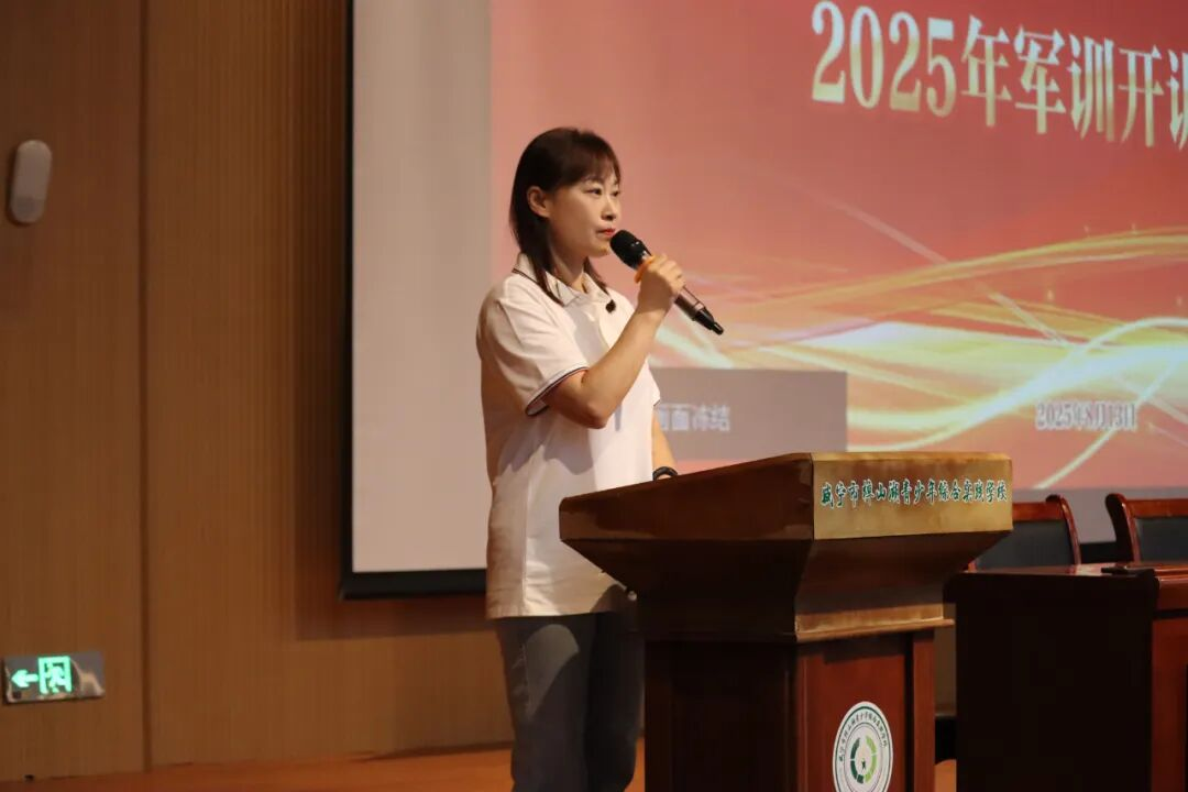 校办主任李艳霞主持发言: 在这金秋送爽的日子,我们迎来了武汉军需工业技工学校2025级新生军训。我代表武汉军需工业技工学校欢迎各位同学的到来,欢迎你们加入军需温暖、友爱的大家庭。《少年中国说》曾写到,少年智则中国智,少年强则中国强,少年进步则中国进步,今日你们步入武汉军需工业技工学校,你们的人生就步入了崭新的发展阶段,“以少年恩来为典范,为中华崛起而读书”。为磨练你们的意志,加强你们的组织纪律性,军训就成为了你们踏入军需生活的一堂必修课。