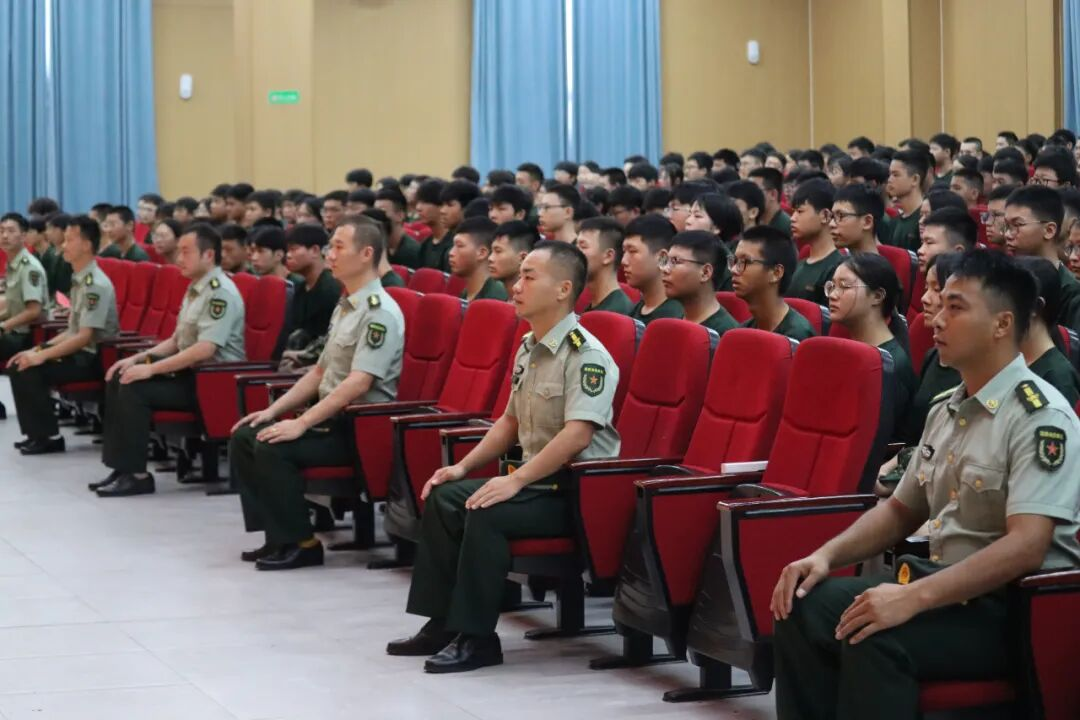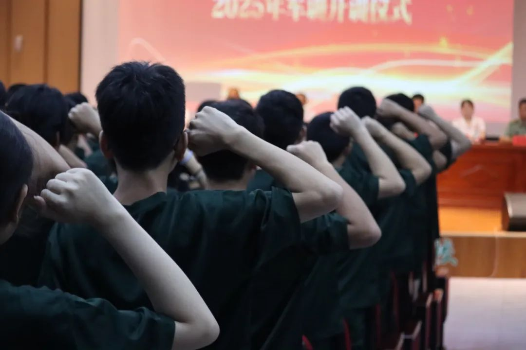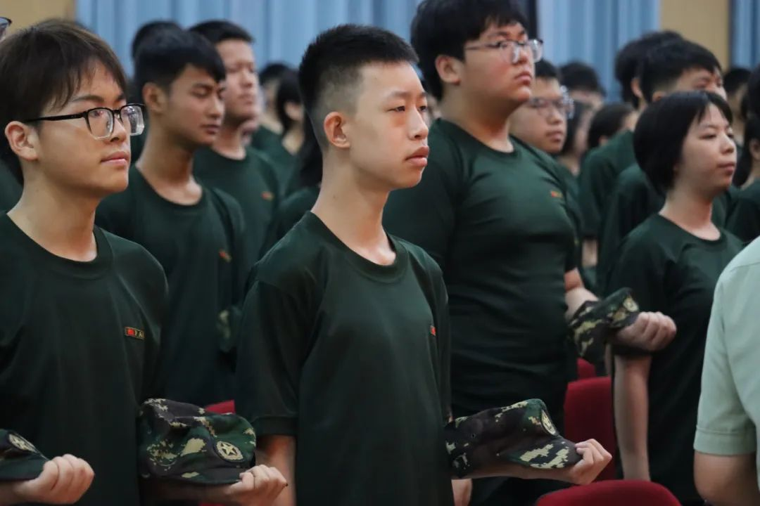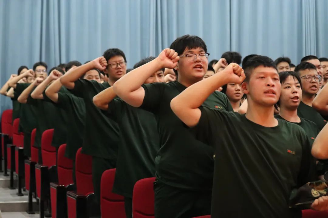 接下来,全体2025级新生们进行了军训宣誓:同学们右手握拳庄严宣誓,晒得黝黑的面庞褪去稚气,眼神如炬;每一句誓词都化作重锤,将纪律意识与家国情怀深深夯进年轻的心房。当“求实 创新 拥军 为民”的校训尾音响彻云霄时,掌声如潮水般席卷全场。